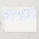 Against a pretty blue confetti background, a little gray elephant with blue and white polkadot ears brings a flower to your baby shower! Your custom text on the right is in matching gray and blue, and there is plenty of room for changes in eight text fields. The image and text are placed on a white background. The back of the card is also white, with the same confetti background. Cute, especially for a baby boy shower.