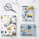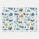 Blue Construction Trucks & Site Theme Pattern Wrapping Paper Sheets