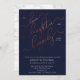 Blue Copper Script Marble Rehearsal Dinner Invite