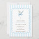 A sweet baptism invitation design with a watercolor dove, scalloped border, and soft blue stripes. Perfect for celebrating your baby boy’s baptism or christening with family and friends. Customizable details included.