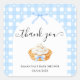 This cute and whimsical thank you sticker has a coquette style with gingham, flowers and ribbons. It features a pumpkin pie with whipped cream and a blue gingham background. It is perfect for a thanksgiving or autumn fall baby shower.