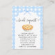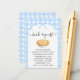 This charming book request enclosure card is designed as an insert to accompany baby shower invitations. It features a cozy illustrated apple pie on a soft blue gingham background with delicate white floral accents and a sweet coquette bow at the top. The elegant script title and rhyming message encourage guests to bring a meaningful book instead of a traditional greeting card, creating a thoughtful keepsake for the parents-to-be. Perfect for dessert-themed or pie-inspired baby showers, this timeless pastel insert can be used for celebrations in any season.