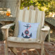 Cool dark blue and coral red nautical boat anchor with customizable monogram and blue and white stripes background