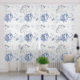 Delicate marine elements are arranged in a repetitive pattern, showcasing various shades of blue and subtle gray tones. Seaweed and coral motifs intertwine to create an elegant and calming design.