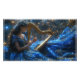 An Elegant Cosmic Blue Lady Strumming on a harp