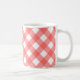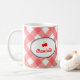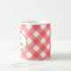 Custom coffee mugs make practical gifts to your bridesmaids. This personalized drinking mug features an gingham pattern background with custom name or text set within a beaded oval frame. The name is topped with cherries of course. Thank your bridal party with these chic coffee mugs.