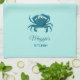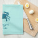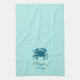 Cute blue crab personalized kitchen towel for your beach themed kitchen.