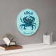 Cute blue crab personalized round kitchen clock. Customize with name or two lines.