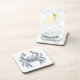 This hard plastic coaster is shown with a lovely floral print blue crab art print.