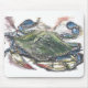 The blue crab image was created with pen and ink and acrylic paint on watercolor paper.