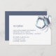 Coastal style reception enclosure card features your wedding reception details in navy blue, accented with a vintage style watercolor blue crab illustration. Designed to match our Blue Crab wedding invitations and accessories.