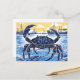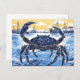 Blue Crab, the Sea, and a Fishing Boat in Linocut Postcard