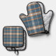 Blue, cream and orange plaid design oven mitt & pot holder set