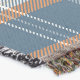 A quality printed throw has its advantages. This is a much finer weave throw than its loopier cousins, and though lighter, it is worth the investment for custom room accessorizing. The back is much prettier than the typical brown, and the fringe on the long sides very vivid, the selvage nicely done. Before photographing, I washed the throw in cold water, delicate, with a thicker woven throw the same size. On tumble dry low, this throw was dry in half the time as the other. This is a very practical quality if you use throws for furniture covers or to wrap up in frequently. The sleekness of the fabric makes it a great layer for accenting or protecting without the feeling of sitting on too much stuff. Perfect for napping or when you feel a light chill coming on. The color printing is beautiful and on this fabric, matched the design and color of my Photoshop image. This is an advantage for blending room fabrics and colors. The fringe on the short sides prints the colors from the design image and therefore varies from the side fringe. I streaked a white fractal line through the plaid pattern to give the illusion of weaving. This printed as crisp as an illusory thread, and put some white in the short side fringe, showing another advantage of print vs loomed- for artistic purposes, line lines, detail, and color integrity can be planned and preserved. My loomed throws have color limitations and more of a needlepoint texture. Print throws reproduce an exact image. The throw felt a little stiff straight out of the package, but this went away in the first delicate wash. Of course I searched the wash water for ink or bleeding and there was none.