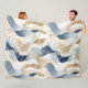 Blue Cream Ivory Abstract Waves Beach Fleece Blanket