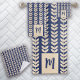 Blue Cream Leaf Pattern Monogram Bath Towel Set