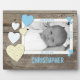 Personalize this plaque with a photo of your baby boy. Phrases used, decorating the frame are, 'Our baby boy,' 'So cute,' and 'We love you.' All can be changed if you prefer. Also add his name.