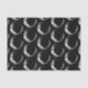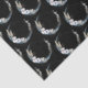Tissue paper with a mystical illustration. A dark blue crescent moon with a elegant thin circle outline and white flower blossoms along its edges.