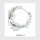 Contour sticker with a mystical illustration. A dark blue crescent moon with a elegant thin circle outline and white flower blossoms along its edges.