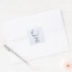 Wedding stickers with a mystical illustration. A dark blue crescent moon with a elegant thin circle outline and white flower blossoms along its edges.
