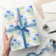 Wrapping paper with images of blue crocuses. The background, image and text can be personalized. Original artwork painted by W.B. with acrylic paint.