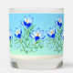 A scented candle with beautiful images of blue crocus flowers. The image and background can be personalized. Original artwork by W.B.
