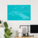 Blue Cuba Map Poster