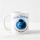 This mug is great for any coffee lover. It features my digitally altered close-up photograph of a coffee filled blue cup and saucer with coffee beans. The arched blue text above the photograph reads "Official Team Member". The bowed black text below the cup and saucer photograph reads "Coffee Consumption Squad". Fill in the template fields to change the text on both sides or click customize to select a typeface style, size, and color you like.