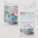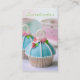 Blue Cupcake Bakery business card. Cover: Blue birdcage decorated cupcakes with company name. Backside: cupcake photo under transparency with company details listed. Font and colors can be customized.
