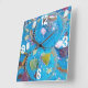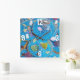 A pile of brightly coloured cupcakes decorated with marshmallows, chocolate stars, hearts, jelly sweets. sprinkles and glitter - ready to eat! Wall clock with a blue, pink, yellow, green, red, white, brown and silver customizable design for you to personalise with your own text, pictures and ideas. Other style options available. An original photograph stylised using digital techniques by Jess Perry.