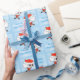 Blue Custom Name, Ice Skating Santa Christmas Wrapping Paper