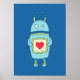 Blue Cute Clumsy Robot With Heart Poster