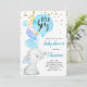 Blue Cute Elephant Baby Boy Shower Balloon Invitation