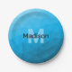 Blue cyan gradient geometric mesh pattern Monogram Paper Plates