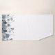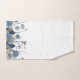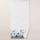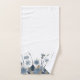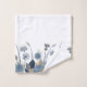 Elegant floral border design featuring blue and beige flowers with tall stems and leaves on a clean white background, creating a soft, modern, and sophisticated look.