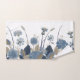 Elegant floral border design featuring blue and beige flowers with tall stems and leaves on a clean white background, creating a soft, modern, and sophisticated look.