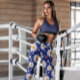 The dainty interlinked rosette design at the waist is truly unique. The poly-spandex makes for a nice fit and available in sizes 0-16. The printing is vibrant and eye-catching.