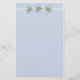 A pretty soft blue stationery paper with three daisy flowers drawn in pencil and watercolor.