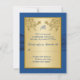 This royal blue damask with gold floral reply card has a FAUX ribbon and gold medallion on it that matches the wedding invitation shown below.