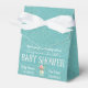 These elegant Blue Damask favor boxes are perfect for any baby shower! A shimmery bright Blue damask background with a blue ribbon that says "baby shower".