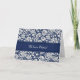 Elopement marriage announcement card with classic and elegant floral damask pattern in dark navy blue and cream off white, unique and stylish, customizable with your names and wedding date, the perfect way to tell your friends and family that you eloped.