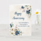 Happy wedding anniversary card for daughter and daughter in law with elegant navy blue and white watercolor flowers.