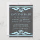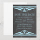 Elegant and chic Deco Chalkboard Save the Date Announcement featuring a trendy chalkboard texture look background and a pair of light blue art deco swirl borders. This lovely save the date invitation is perfect for announcing your art deco 1920's themed wedding. Easy to customize, simply add your wedding details. Click "Customize It" to find additional personalization options.