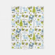 A fleece blanket featuring a pattern with illustrations of blue deer, tracks, trees, leaves, and acorns. Personalize the name.