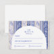 A timeless blue and white design inspired by classic Delft porcelain and French toile patterns. The patchwork tile border combines delicate florals, stripes, and ornamental motifs that evoke vintage European ceramics. A soft arched panel in the center keeps the layout refined and elegant while allowing the details of the porcelain-inspired pattern to frame the celebration beautifully. Perfect for couples planning a sophisticated blue and white wedding with traditional European charm.