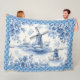 Blue Delft Windmill Floral Tile Border Fleece Blanket