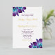 Gold, purple and turquoise blue Dendrobium orchid wedding invitation. Simple wedding invitation design that features a beautiful orchid variety called a blue dendrobium. It is teal / turquoise in color paired with violet and royal purple. The names of the bride and groom and the reception wording is in real gold foil. A great flower choice for peacock wedding color theme.