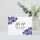 Purple and turquoise blue Dendrobium orchid wedding RSVP postcard. Simple wedding RSVP postcard design that features a beautiful orchid variety called a blue dendrobium. It is teal / turquoise in color paired with violet and royal purple. A great flower choice for peacock wedding color theme.