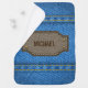 Blue denim jeans with leather name label baby receiving blanket