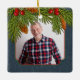 Blue Denim Pine Boughs Memorial Photo Christmas Ceramic Ornament